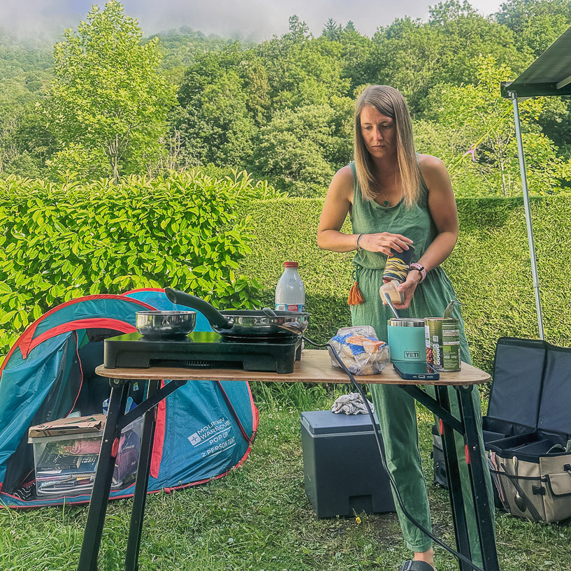We did all our cooking on a foldable LOC8 table – separate from the one we ate meals at. Having a dedicated prep space outside made a big difference, especially in the evenings.