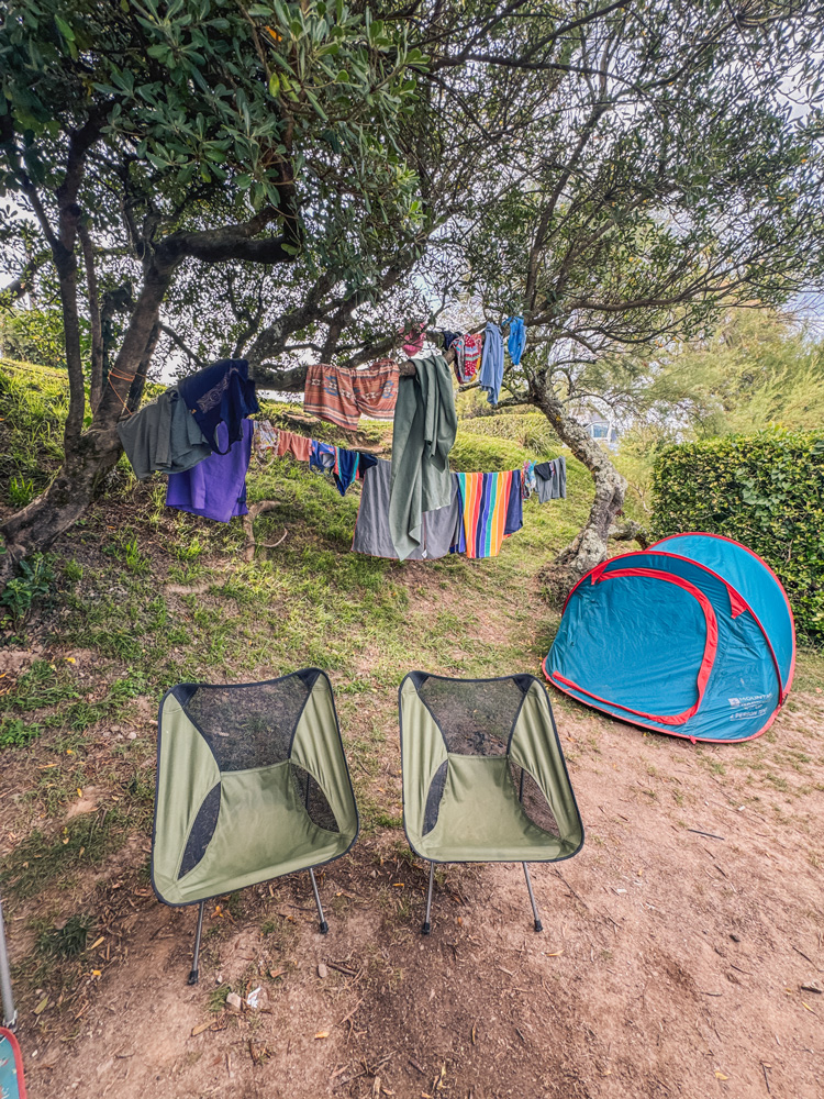 We brought a compact retractable washing line that we could tie up at various campsites. It was one of our most-used items — five towels and countless clothes meant there was always something to hang out. We also noticed that seasoned campers brought foldaway rotary lines, which are brilliant if you’ve got the storage space.