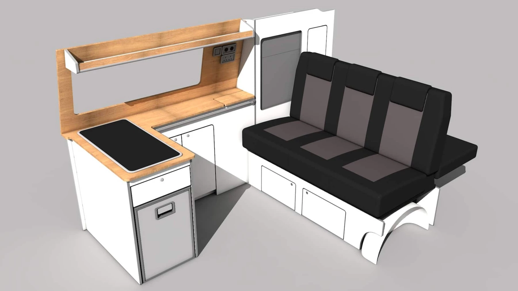 Each of our 6 unique conversions has its own 3D render to help show you exactly what it would look like in a campervan and with each part detailed. It’s a quick visual way to help make a customer aware of what conversion would work best for them.